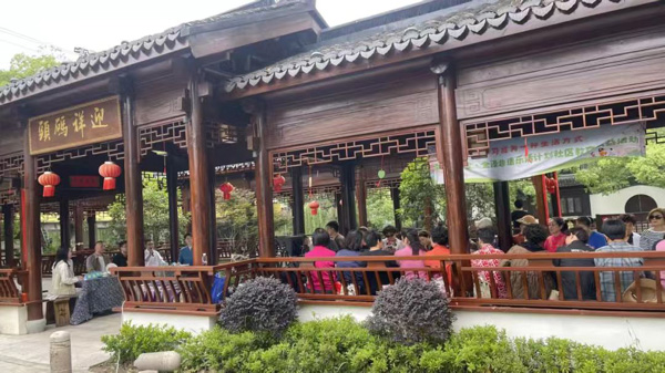 ▲上海青浦金泽古镇迎祥桥边,迎祥码头正在举办“幸福悦学堂·金泽非遗乐活计划”社区教育公益活动。蒋齐华/摄。