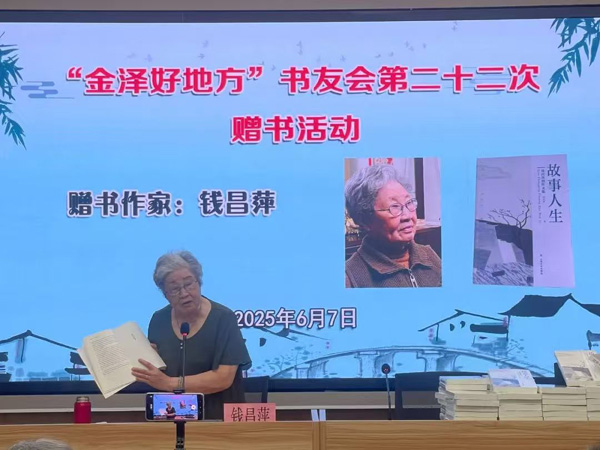 江南雨季伊始,由朱家角成教集团金泽成校主办的“好地方”书友会学习坊,迎来了一位特殊的嘉宾——耄耋之年的故事大王钱昌萍老师。钱老师以六十余载人生积淀的智慧,将“时光里的琥珀”凝聚于《故事人生:钱昌萍创作文集》之中。她不仅慷慨赠书,更亲临现场分享精彩故事,与五十余位书友一同沉浸于桥乡金泽的馥郁书香之中,生动展现了社区教育连接人心、滋养文化的魅力。