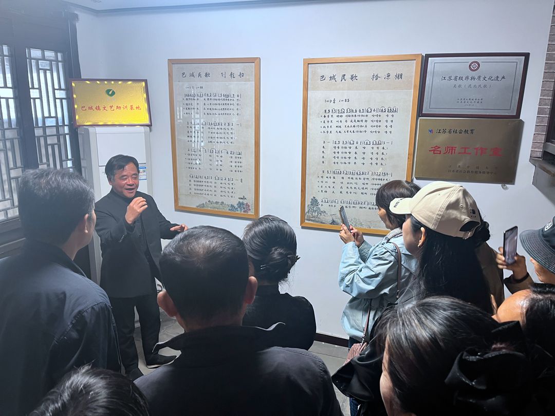 作为江苏省级非物质文化遗产,昆北民歌在阳澄湖畔的田间地头孕育生长。学员们在名师工作室聆听传承人演唱《搭凉棚》等经典曲目,感受吴侬软语中蕴含的劳动智慧与生活热忱。在倪小舟竹刻工作室,众人驻足欣赏《西园雅集》等精品,体悟“写意与写实结合”的雕刻匠心与文人雅韵。