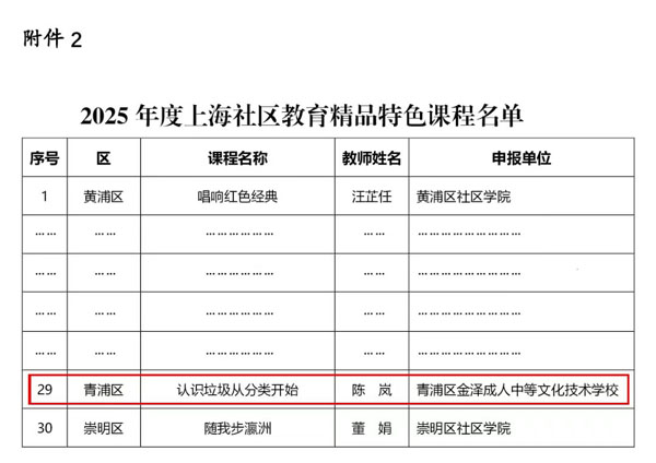 在2025年度上海社区教育特色课程征集与遴选活动中,我集团陈岚老师设计执教的课程《认识垃圾从分类开始》获评2025年度上海社区教育精品特色课程。该课程聚焦民生热点,展现了我校服务社区、服务市民的扎实行动。