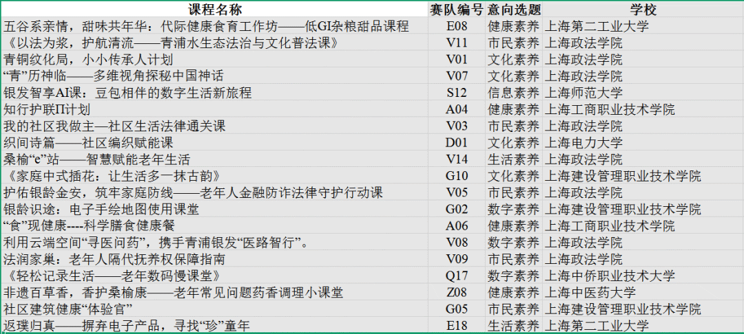 创课大赛暨上善悦学·社区创课青浦区课程清单