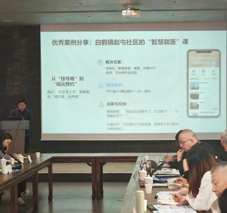 同时,会议还明确了区第二老年大学智慧教室验收筹备、各成教集团智慧学习场景申报、产教结合开发数字学习课程等相关任务要求,为青浦区老年数字教育的未来发展提供了明确的指导和行动计划。