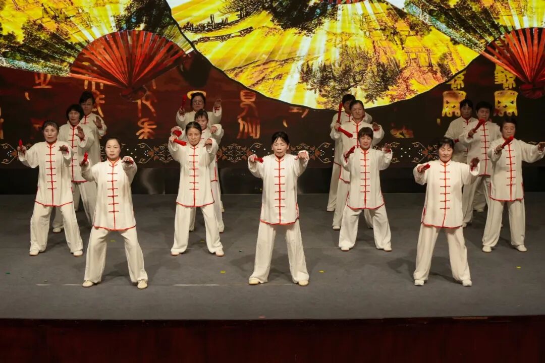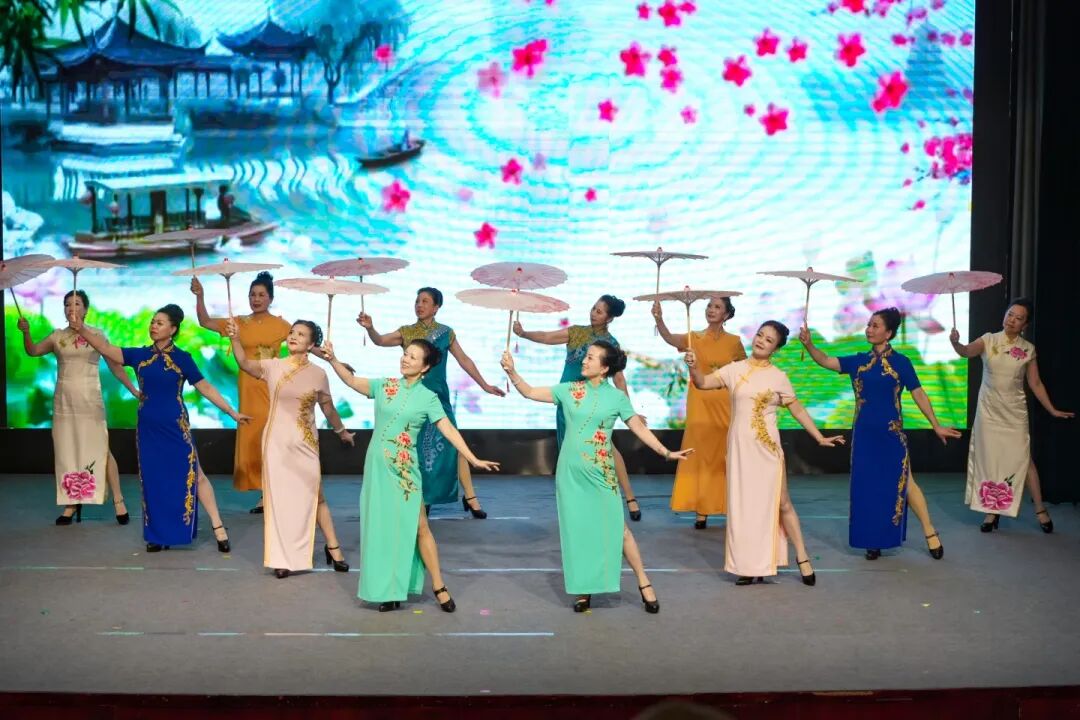 成果展示环节精彩纷呈,23个节目轮番登台,涵盖合唱、舞蹈、戏曲、走秀、太极拳、钢琴联弹等多种形式。白鹤成校新江居委合唱班的《外婆的澎湖湾》清甜悠扬,乘着歌声的翅膀带大家飞向祖国宝岛台湾;香花桥成校交谊舞中级班的《水兵舞》节奏鲜明、步伐矫健,尽显自信昂扬的精神风貌;白鹤成校越剧班的《忠魂曲》选段韵味悠长,一腔忠魂诉说赤子之心;香花桥成校走秀班的《江南恋》雅致温婉,油纸伞配旗袍,一步一景摇曳生姿。从古典舞《江南谣》的诗情画意到蒙古舞《彩虹》的热情奔放,从钢琴四手联弹《四小天鹅》的灵动轻快到沪剧《风雨同龄人》的醇厚乡音,从 24 式太极拳的刚柔并济到舞韵瑜伽《东方红》的柔韧有力,学员们以饱满的热情、专业的演绎,生动诠释了 “老有所学、老有所乐、老有所为” 的生活态度。本次活动还特别采用“线下展演 线上展示”的方式,除现场班级的精彩展演外,其他班级的学员风采与优秀作品通过节目单二维码同步呈现,让更多人领略老年教育的独特魅力。