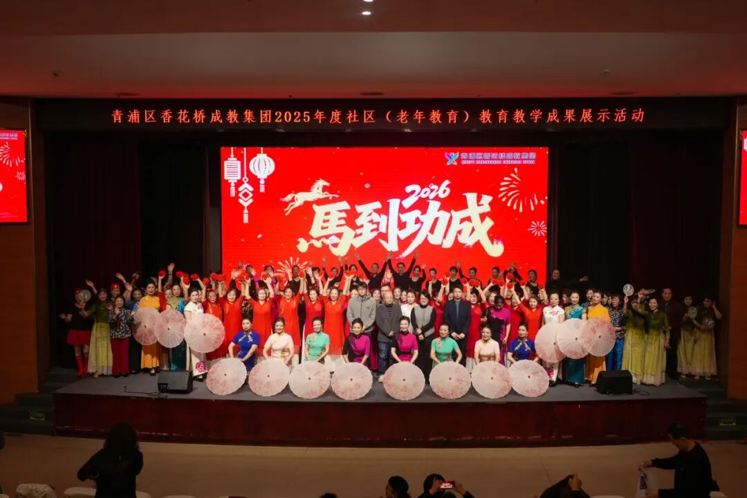 2026年1月13日下午,青浦区香花桥成教集团以 “悦享银龄,‘鹤’彩香花” 为主题的2025年度社区(老年)教育教学成果展示活动圆满落幕。青浦区香花桥街道社区党群服务中心主任曹边防、白鹤镇社会事业发展办公室韩秋芸、香花桥街道社区服务办公室董春雷、区社区学院社区教育部主任索乃颖等领导嘉宾应邀出席,与全体教师、学员、学习点联络员及社区居民代表齐聚一堂,共同见证银龄学子的别样风采,共赏老年教育的丰硕成果。