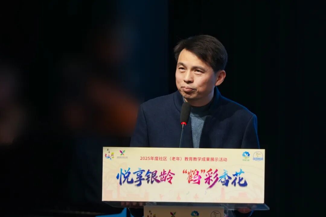 活动伊始,香花桥成教集团党支部书记、校长仲兵登台致辞,他向莅临现场的各位领导、嘉宾致以热烈欢迎,向辛勤耕耘的教师们、勤学善思的学员们以及所有关心支持社区(老年)教育的朋友们表示衷心感谢。他表示,集团始终践行“泛在可及 乐学善教”办学理念,通过校内校外课程互补、长班短训结合、线上线下联动的多元模式,实现学习资源全域均衡覆盖。集团精准对接学员需求,持续引进优质师资、研发特色课程,还配备了充电桩、血压计、用餐配套等便民设施,全力筑牢“乐学”基础。未来,集团将继续深耕社区(老年)教育,不断优化资源供给、创新教学形式,让社区(老年)教育惠及更多群体,为构建全民终身学习的学习型社会贡献更大力量!